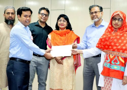Handing over of the certificate to Dr. Md. Ferdaws Alam, for successfully completing 8 (Eight) weeks long small Incision Cataract Surgery (SICS) long training on 24.3.2019.