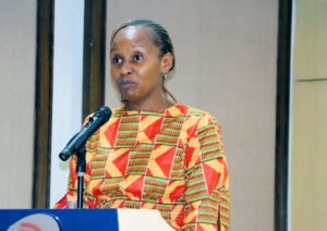 The CEO awarded a certificate to Dr. Angela Mokaya with flowers and wished her good health, happiness, and a bright career.